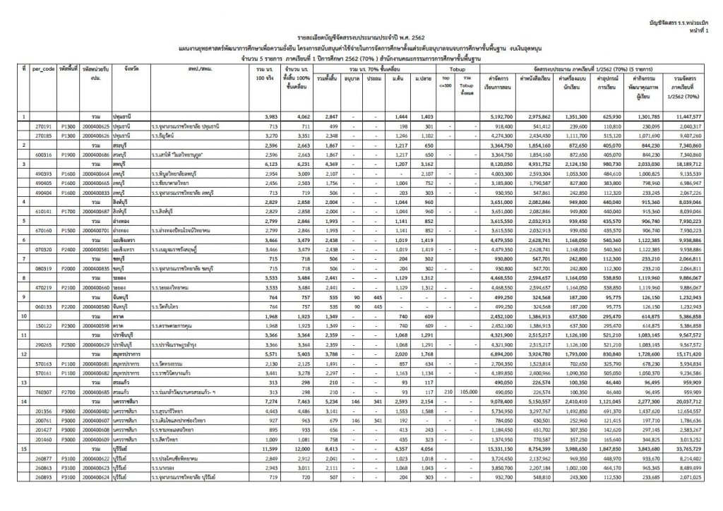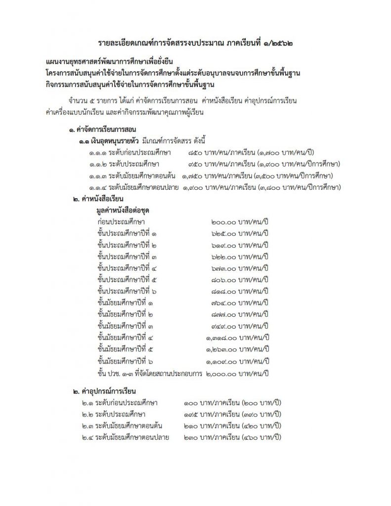 การจัดสรรงบประมาณรายจ่าย กิจกรรมการสนับสนุนค่าใช้จ่ายในการจัดการศึกษาขั้นพื้นฐาน (งบเงินอุดหนุน) ภาคเรียนที่ 1/2562 (งบหนังสือเรียน)