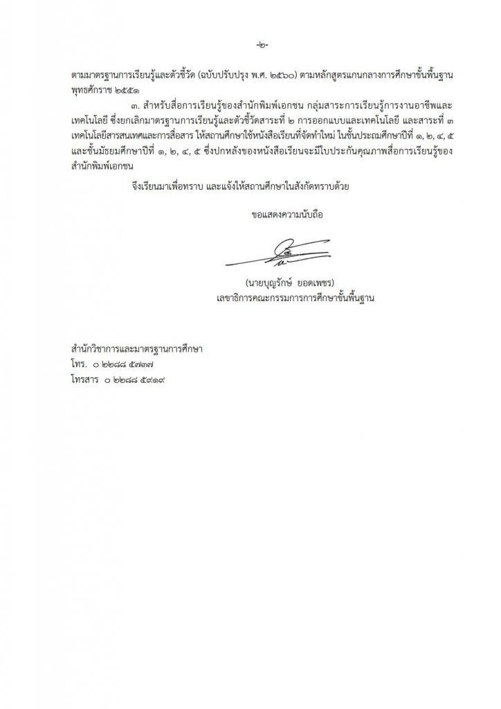 ส่งหนังสือเรียนถึงสถานศึกษาภายในวันที่ ๙ พฤษภาคม ๒๕๖๒